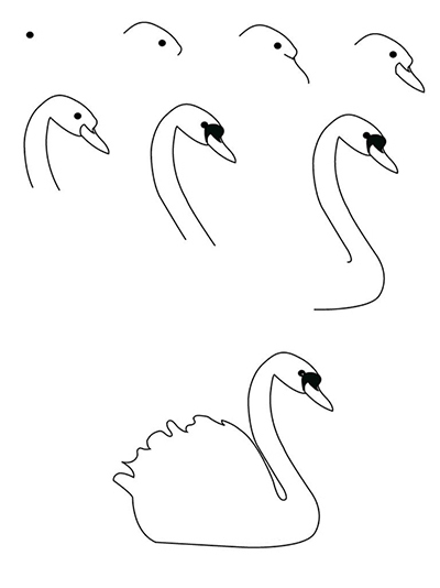 Чтобы нарисовать сюжет к сказке «Дикие лебеди», надо поэтапно изобразить лебедей и фон:
