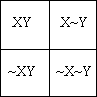 Далее можно, взяв другой признак, например, Y разделить универсум на еще две части. Таким образом, мы получим «двухбуквенную» диаграмму Кэррола: