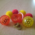 Для игр подойдут маленькие камни, бусины, бисер, крупы, пуговицы и т.д. Вы можете попросить рассортировать их по какому-либо признаку или просто собрать в контейнер. Начинать лучше с предметов побольше, затем постепенно уменьшать размер.