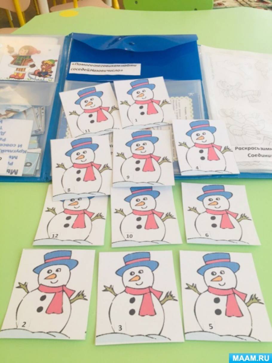 — «Помоги снеговикам найти соседей». «Назови число»;