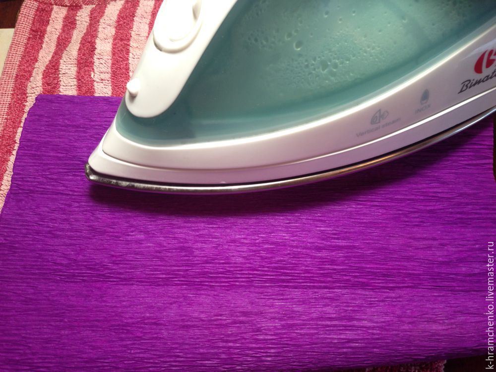 Начинаем самое интересное! Придаем рельеф и оживляем лепестки. Нам понадобится: утюг, гофрированная или креп-бумага, ненужный кусочек ткани (маленький). Но, если у вас есть молд для лепестков, делайте на нем, тогда вам нужен только утюг и молд.