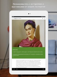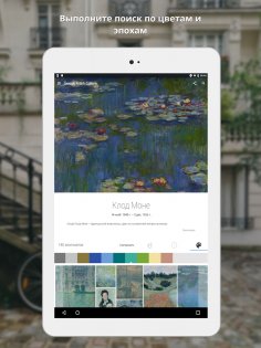 - Распознавание экспонатов: получайте сведения о произведениях искусства, наводя на них камеру телефона, даже без подключения к Интернету (доступно в некоторых музеях).