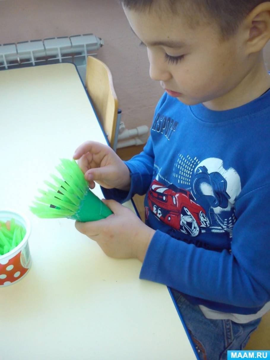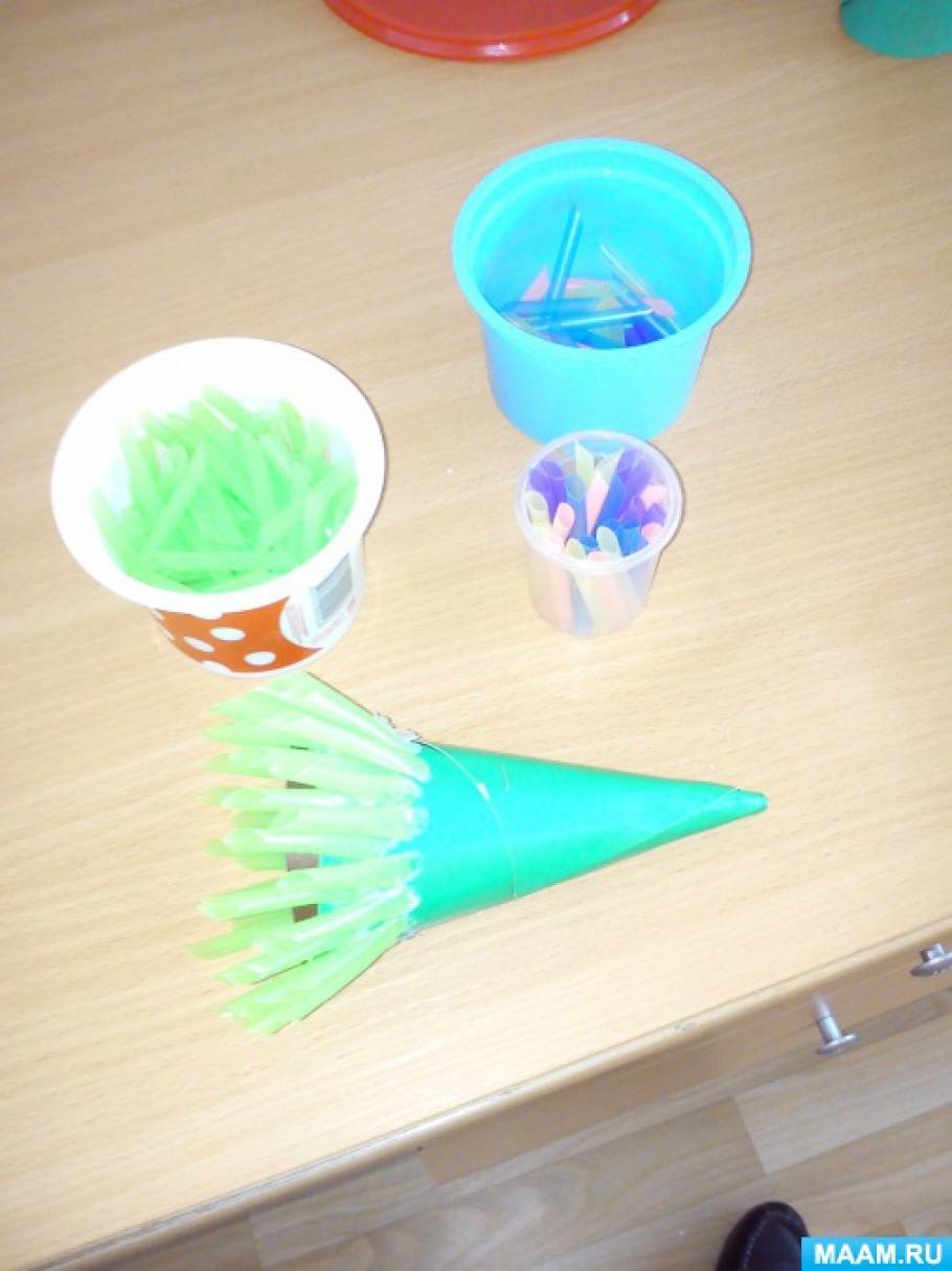 Лепка с элементами мозаики из коктейльных трубочек «Хоровод из осенних листьев» (средняя группа) Цель: развивать творческие способности дошкольников. Задачи: — познакомить детей с изготовлением поделки из нарезанных коктейльных.