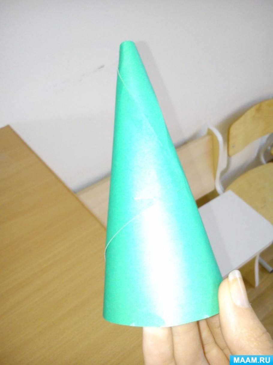 2. Готовим конус из белого или зеленого картона, закрепив его скотчем.